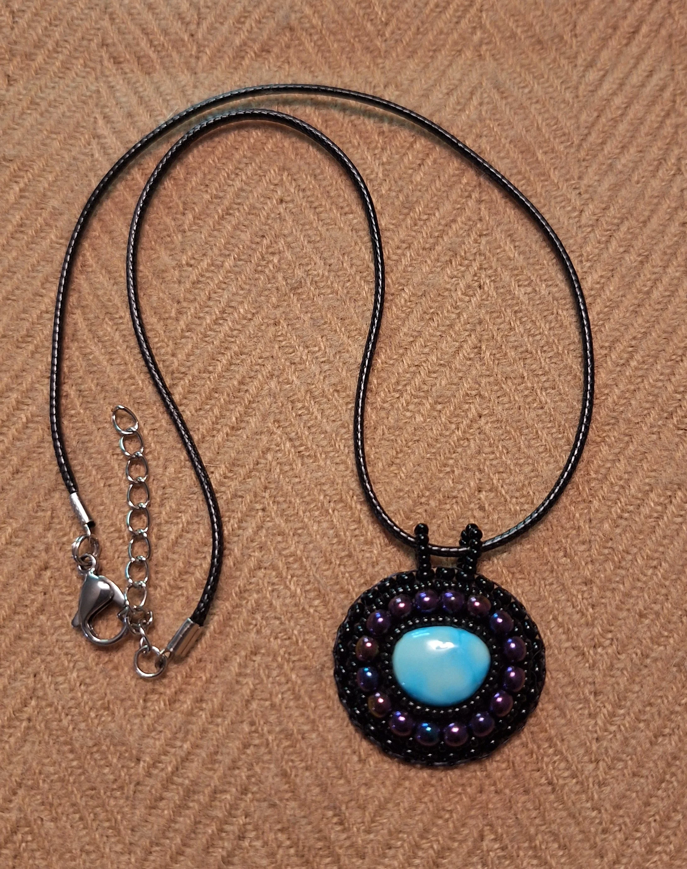 Lovely Turquoise cabachon pendant with glass beads on a simple choker with a lobster clasp.